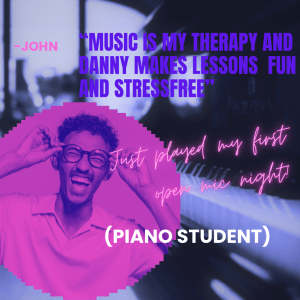 My name is Danny and I want to teach you how to make music. Whether you want to learn to play an instrument, to play multiple instruments, to create your own music, or even produce music on a professional level, I can teach you to get there in the way that works best for you.