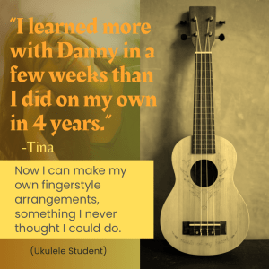 I teach four main instruments: piano, guitar, bass guitar, and the ukulele. Why those? I’ve been playing them all for over 20 years because I’ve found them to be the easiest to learn, which makes them the most fun to teach. I’ve learned to play other instruments, but I have chosen to teach just these because I love them. You will too!